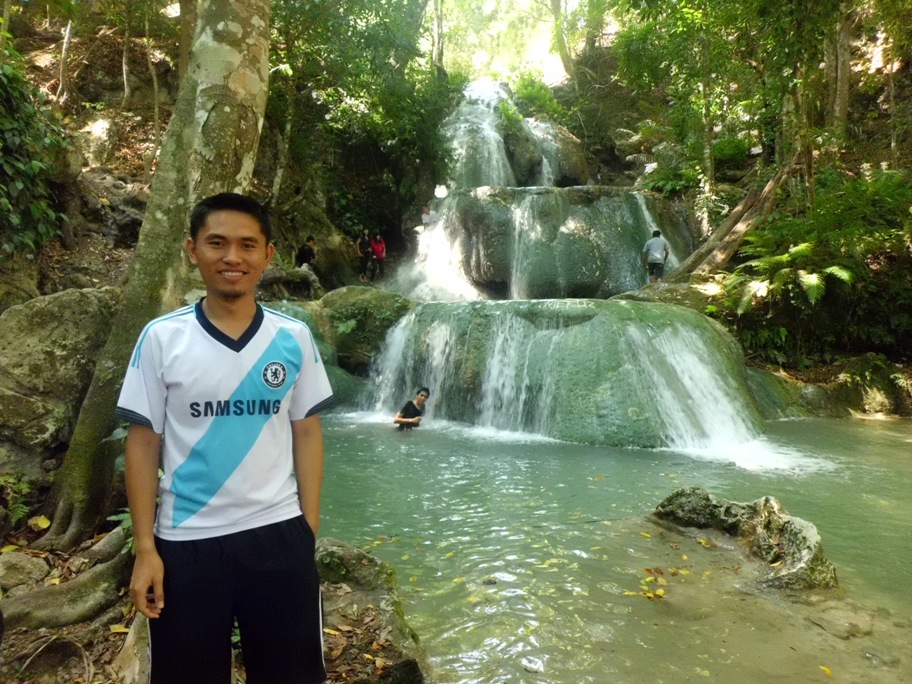 Bobi dan Ade serta Ari langsung mandi di air terjun, sedangkan aku dan Monica hanya melihat dan bernarsis ria sedangkan Andi ;malah menjelajah dan memberikan roti sama anjing kurus. Disekitar area air terjun ada penjual minuman dan buah serta anjing yang tidak terurus juga. Tak lama kemudian, Bobi dan Ade menyuruh difoto sehingga aku dan Monica terpaksa deh ikut-ikutan naik ke atas batu air terjun oehala dipandu oleh Ari untuk bernarsis ria (tentu saja kami ikut dengan senang hati :), karena berfoto itu hobbi,,hehe).. Meski celana panjangku basah tak masalah karena air terjun ini sangat bagus untuk berfoto dan airnya dingin, dan asli dari air pegunungan, tidak seperti di Kupang yang airnya dari air limestone. Tak terasa kami berlima menghabiskan 1 1/2 jam hanya untuk berfoto di Oehala ini dan jam 15.00 WITA kami pun meninggalkan air terjun ini.
