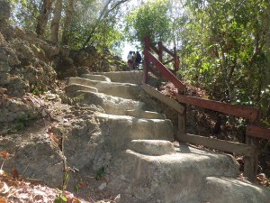 Sesampai di air terjun Oehala maka kami harus melewati tangga dari semen menurun sekitar 40 anak tangga dengan jarak yang pendek-pendek. Keunikan dari air terjun oehala terletak aliran air yang jernih mengalir di batu yang berwana putih dan bercampur hijau mirip lumut tapi bukan lumut, 7 tingkat besar air terjun, dan beberapa anakan kecil air terjun dan ke bawah ada air terjun kembar yang jaraknya 1 meter dan air terjun yang datar mirip dengan kasur.