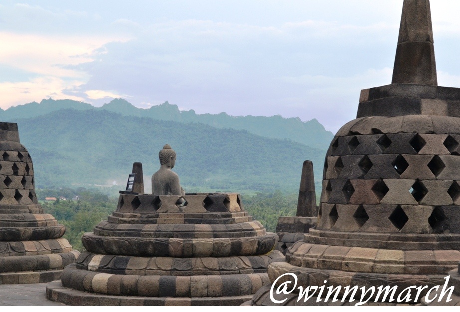 Setelah itu aku dan Yessi terpisah karena dia mau ikutan beribadah sementara aku menikmati setiap relief dari Candi Borobudur. Candi Borobudur yang merupakan salah satu situs bangunan tertua yang diakui oleh Unesco yang begitu menakjubkan. Terdapat ribuan candi seperti rangkaian dan terdapat patung Buddha juga dan dibelakang Candi Borobudur terdapat pemandangan pegunungan yang asri dan indah.