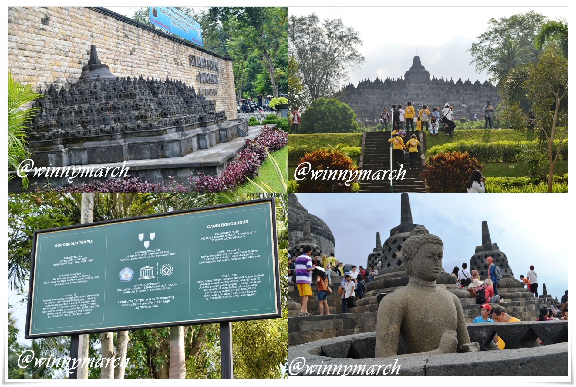 Memasuki Candi Borobudur, aku sangat terpukau dengan keindahan dan arsitek maha karya Candi Borobudur. Situs masterpiece!! Begitu banyak orang yang datang melihat Candi Borobudur hingga desak-desakan. Tidak heran, karena tempat wisata yang menarik di Magelang salah satunya ialah Candi Boorbudur, eits bukan hanya menarik tapi merupakan tempat wisata yang wajib dikunjungi di Jawa Tengah dan harus dilihat dalam hidup 😀