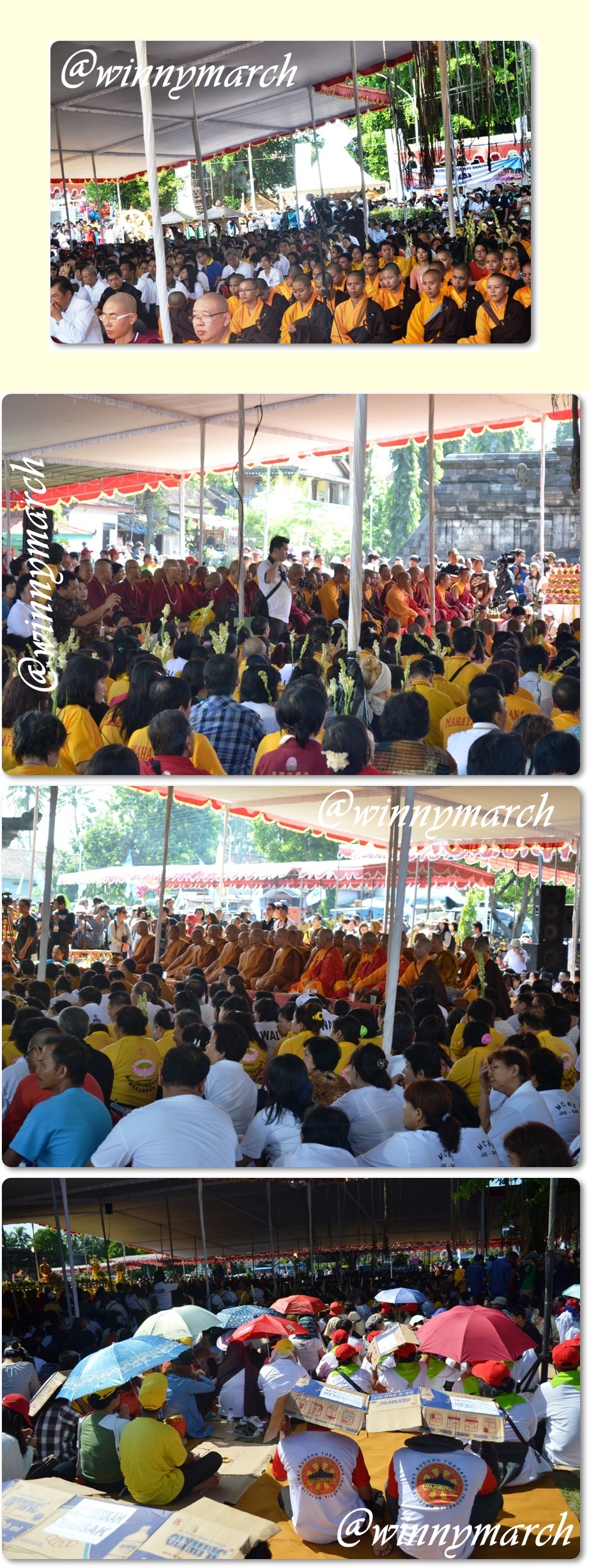Acara tersebut aku dapatkan dari Fotographer sebenarnya saat si Yessi lagi ibadah tapi dia dapatnya dari situs Walubi juga. Nah ketika kami sampai di Candi Mendut acara sudah dimulai dan begitu banyak orang yang datang. Bahkan aku dan Yessi tidak mendapatkan kartu Peserta karena habis. Dan untuk masuk pun harus sempit-sempitan. Akhirnya si Yessi ikutan ibadah sementara aku mengambil photo acara tersebut dan mengamati sekeliling.