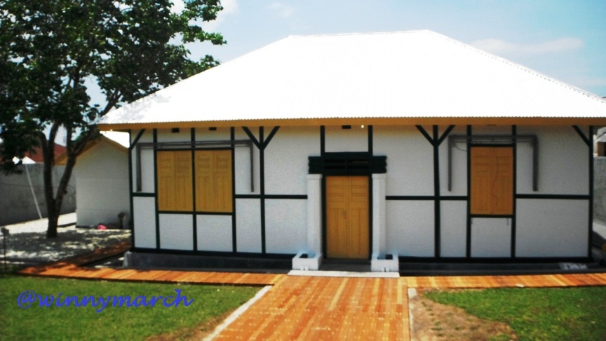 Dari pernjelasan Guide Flores, kami hanya bisa berimajinasi karena dari luar kami hanya melihat sebuah rumah kecil dan disampingnya terdapat pohon dengan rumput hijau yang mengelilingi rumah pengasingan tersebut ditambah dengan papan bertuliskan ” Situs bekas rumah pengasingan Bung Karno di Ende”.