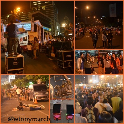 Keluar dari bangunan UOB, aku, Muja dan Shinta begitu kaget melihat sekumpulan manusia yang antusias untuk melihat acara perayaan HUT Jakarta.