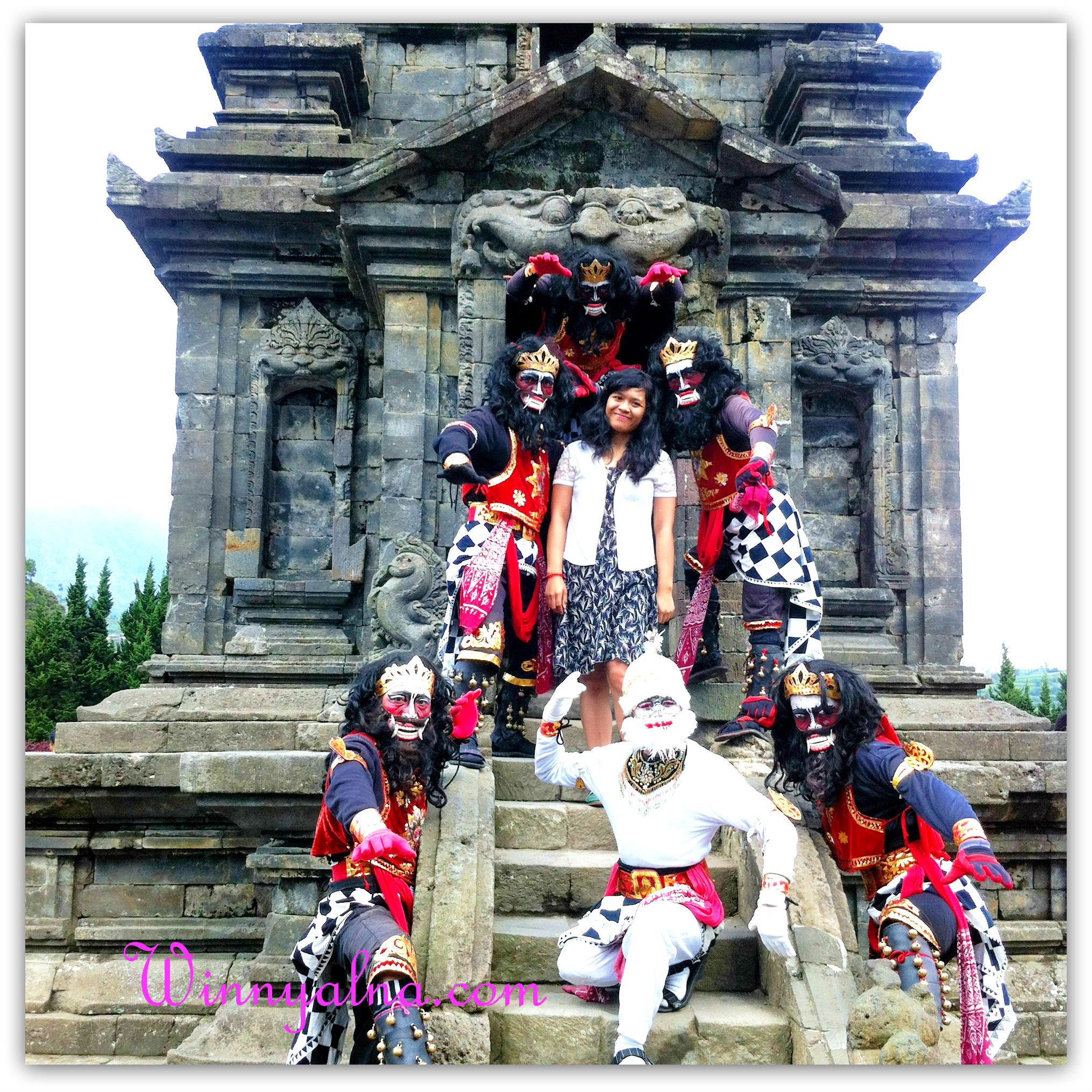 Dalam perjalanan ke Candi Arjuna, aku memang memisahkan diri dari tim karena aku ingin menjelajah lebih dalam tentang Candi Arjuna. Saat itu aku memphoto setiap inchi Candi Arjuna hingga akupun bertemu dengan warga local Dieng dengan seragam tokoh Hindu Mahabrata yaitu Gatot kaca. Untuk berphoto dengan mereka maka cukup membayar Rp10.000 untuk satu photo dan akupun tak menyia-nyiakan kesempatan berphoto dengan tokoh Mahabrata sekalian berbagi rezeki kepada pengais rezeki sekaligus kenang-kengan di Candi Arjuna Dieng.