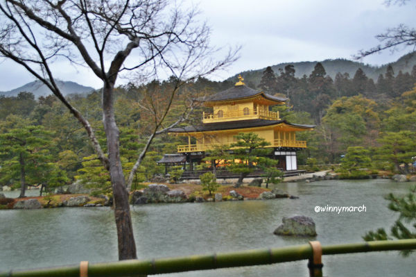 Untuk menuju ke Kinkakuji temple (Golden Pavillon) dari stasiun Kyoto dari line B2 dengan nomor bus 101. Line B2 itu artinya nunggu bus di jalur B2 karena di terminal di depan Kyoto tower ada palang nomor sehingga tinggal menunggu nomor busnya. Sampai Kinkakuji temple (Golden Pavillon) maka aku langsung berjalan ke tempat pembelian karcis. Untuk harga tiket masuk ke dalam Kinkakuji temple (Golden Pavillon) seharga 400 Yen lalu mulailah tour keliling Kinkakuji temple. Sayangnya pas berada di Kinkakuji temple (Golden Pavillon) cuaca hujan sehingga dinginnya minta ampun! Syukurnya banyak teman yang aku kenal di Kinkakuji temple (Golden Pavillon) sehingga asyik saja jalan-jalan. Cuma sebentar aku berada di Kinkakuji temple (Golden Pavillon) terus yang dilihat juga cuma Golden Pavillonnya, tidak begitu luas. Mengamati sekitar Kinkakuji temple (Golden Pavillon) pasti akan lebih seru jika tidak hujan karena aku tidak tahan dingin plus salah kostum akhirnya aku memutuskan untuk balik ke penginapan dan memutuskan mengelilingi Kyoto keesokan harinya karena Fushimi Inari atau Arashima gagal aku kunjungi di hari pertama Kyoto.