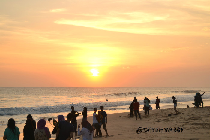 Mengesalkan, pantainya pasir putih, garis pantai panjang, tapi sampahnya banyak :huhu. Tapi syukurlah masih bisa melepaskan penyu di sana, semoga mereka hidup bebas. Golden sunset-nya keren banget!