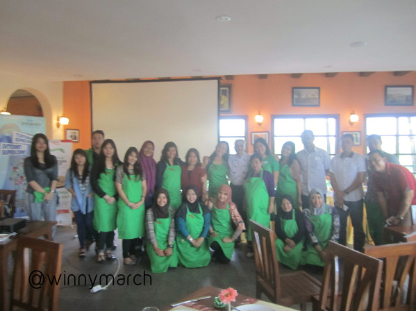 Terakhir hal serunya lagi apron itu jadi oleh-oleh buat kami, dikasih roti buaya yang dipotong Bu Maria langsung terus photo bersama.