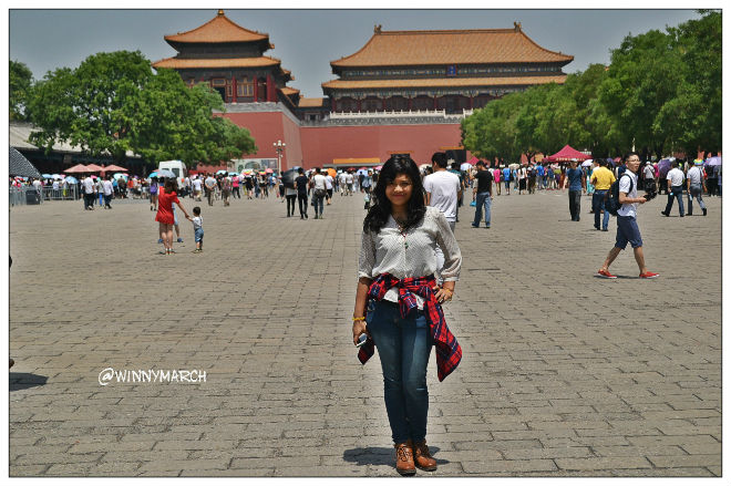 Objek Wisata Beijing/Tempat yang dikunjungi di hari pertama Tianmen Square, Forbidden city dan tempe of heaven. Harga masuk ke dalam forbidden city seharga 60 Yuan, tapi aku tidak membeli tiket tentunya cukup dari luar saja karena cukup plus pengunjungnya ramai sekali jadi males untuk masuk ke dalam. Eeeh aku malah mengunjungi temple of heaven dengan harga tiket 35 Yuan yang menurutku templenya sih so so.