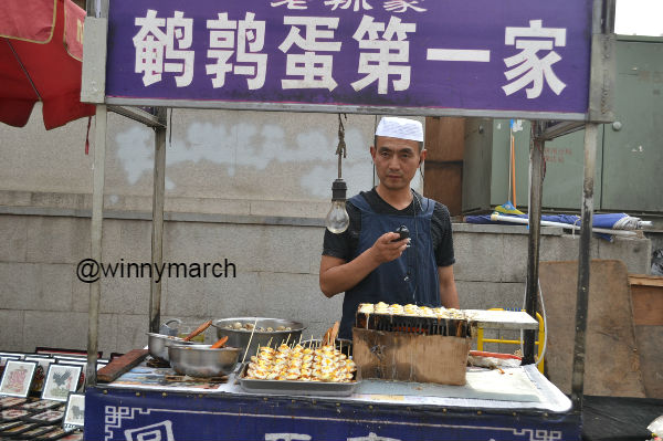 Wah keren Winny traveling sendirian ke daerah yang susah mendapatkan orang yang bisa berbahasa Inggris. Bagus juga ya penjual makanan itu pakai peci, jadi tampil beda dan memudahkan pilih makanan halal.