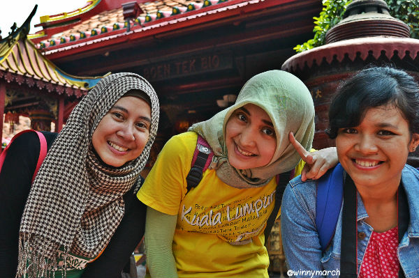 Rinta, Defi dan aku di depan Vihara Boen Tek Bio Tangerang
