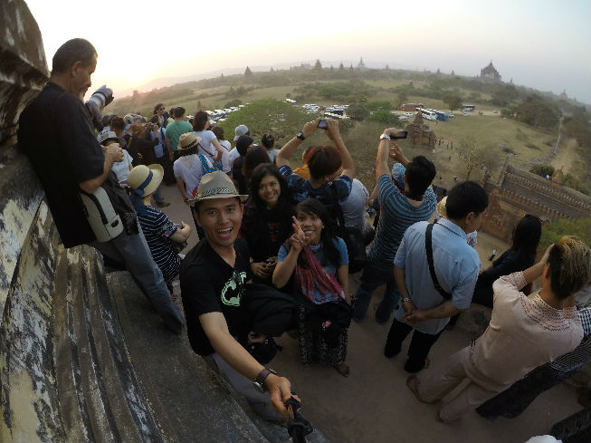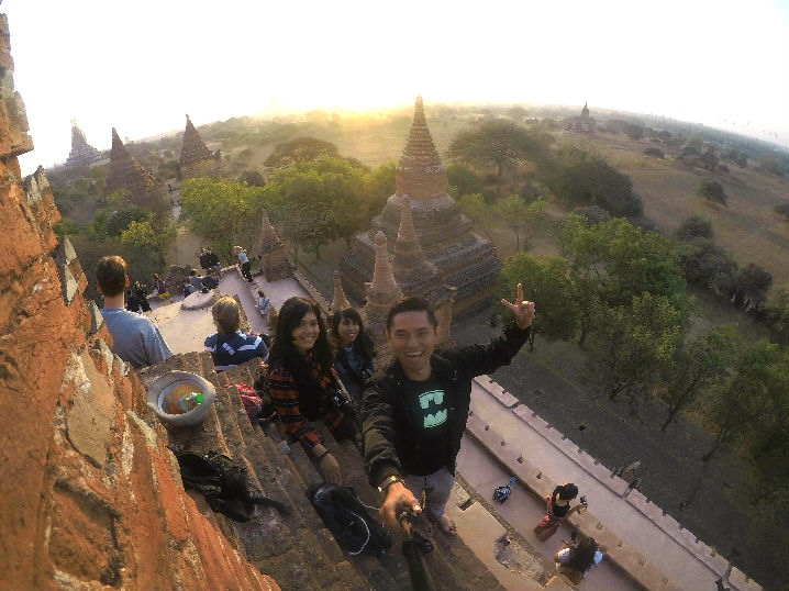 Gegara mengikuti jejak Bule, aku, Melisa dan Ade harus berpikir keras untuk naik ke Candi yang susah dinaiki. Padahal ada tulisan Do not Climb dan jujur jangan dicontoh karena itu adalah perbuatan tertolol yang pernah kami lakukan. Aku si takut ketinggian sampai deg-degan tingkat tinggi bahkan untuk naik ke atas saja aku harus diangkat Ade dan seorang Bule yang kami ikutin naik. Eh lama-kelamaan tidak hanya kami berenam di atas puncak Candi malahan jadi ramai sekali sampai orang Myanmarnya marah.