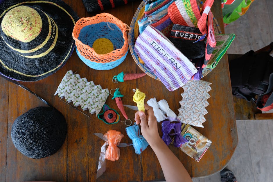 Dengan cekatan ibu-ibu tersebut memasukkan tali plastik ke dalam jarum lalu dijahit dengan teliti sesuai dengan produk yang diinginkan. Lamanya pekerjaanya pun tergantung besar kecilnya produk. Kalau tas ukuran kecil pengerjaannya bisa 1 minggu, untuk gantungan kunci bisa sehari. Harga untuk produknya pun bervariasi mulai dari harga Rp25,000 hingga ratusan ribu tergantung tingkat kesulitan dan waktu pengerjaan.
