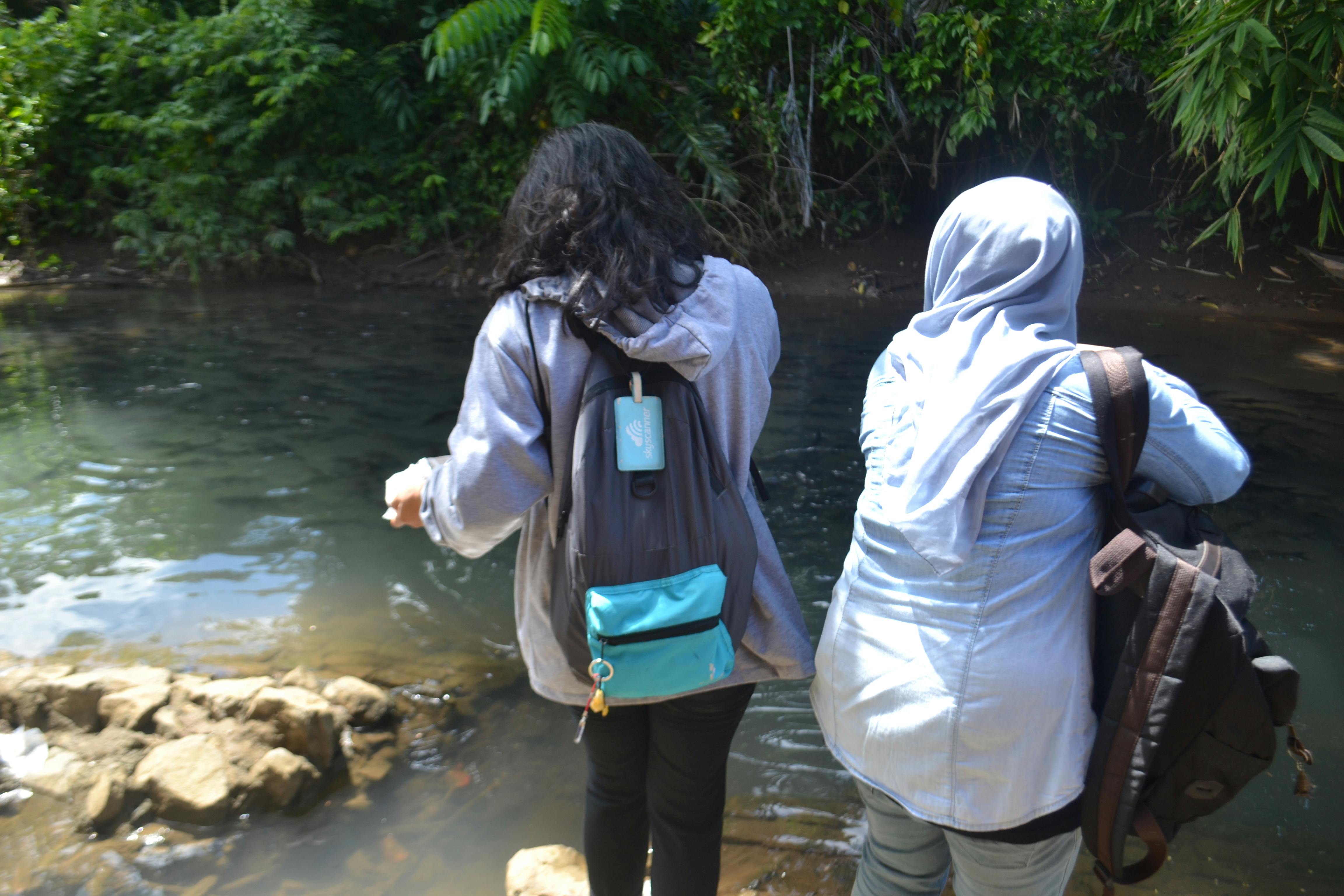Sesampai di air terjun yang kami impikan, waktu menunjukkan jam 2 siang. Aku, Jay, Ilham dan Herfina memilih turun mendekat air terjun yang berada di atas bukit dengan pepohonan rindang. Air terjuinnya ada 3, debitnya tidak terlalu besar namun airnya begitu jernih.