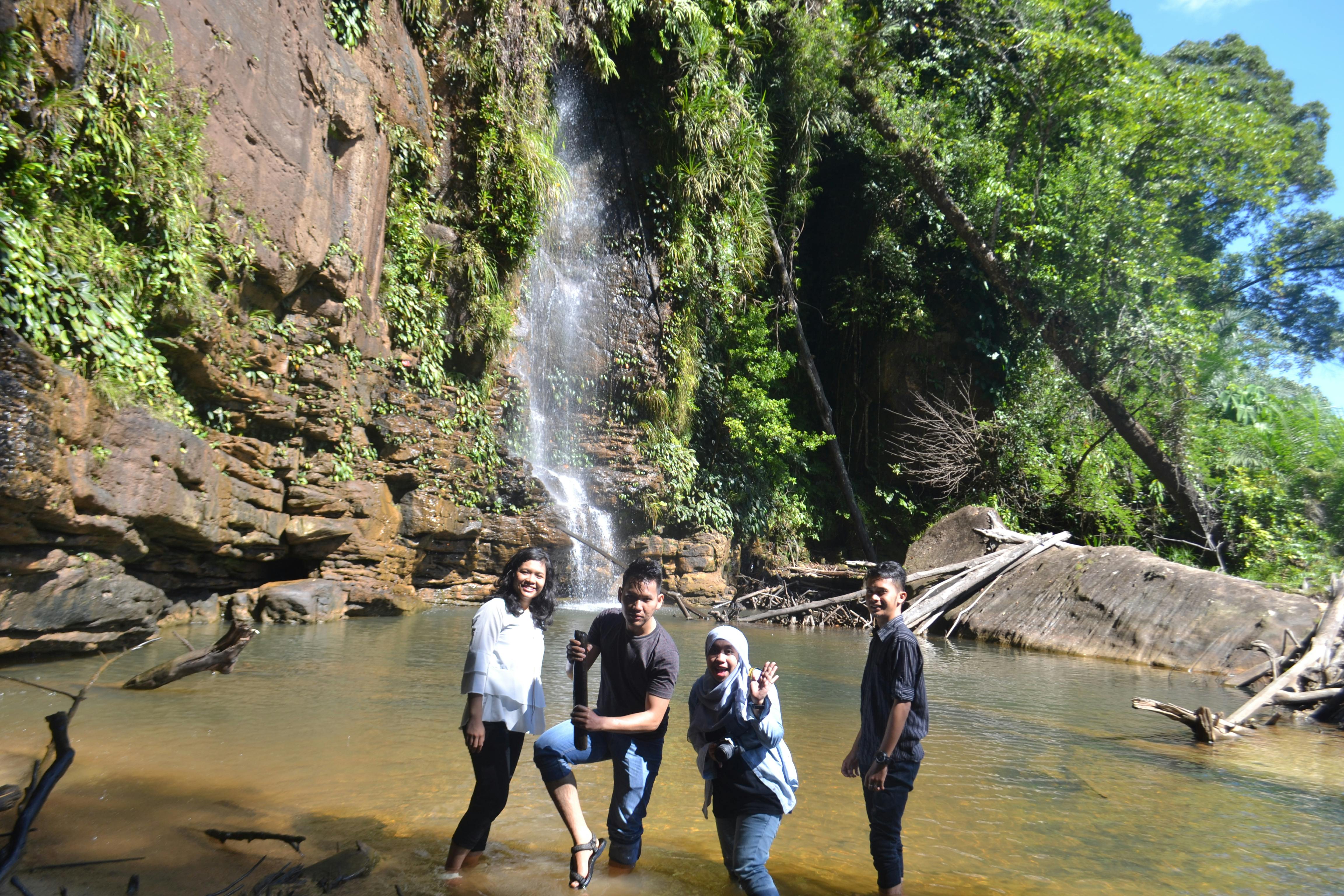 Keputusan kami bertempat menuju ke air terjun merupakan pilihan yang tepat karena kami dapat bermain dengan air terjun bahkan melihat pelangi di samping air terjun.
