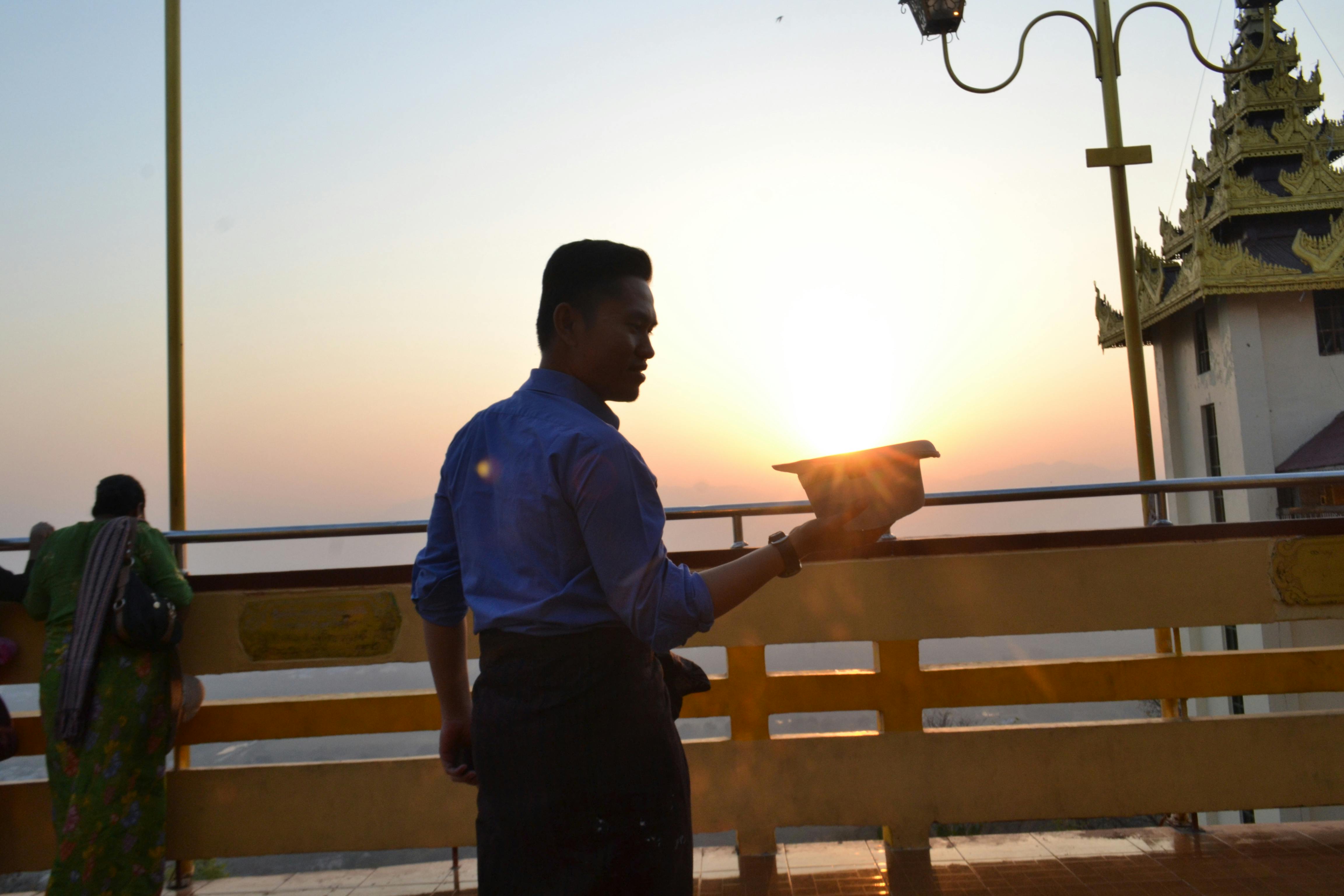 Yah trip Myanmar kami memang banyak banyak tujuan wisatanya terutama Kota-kota yang ingin kami kunjungi. Salah satunya sunrise dari Mandalay Hill. Karena melihat kabut menutupi pemandangan Kota Mandalay dari atas, akhirnya kami memanfaatkan dengan memphoto Temple saja. Hingga akhirnya jam 6 an, sunrise yang ditunggu pun ada. Kabut sudah mulai berhilangan dan membuat Ade mulai bahagia.