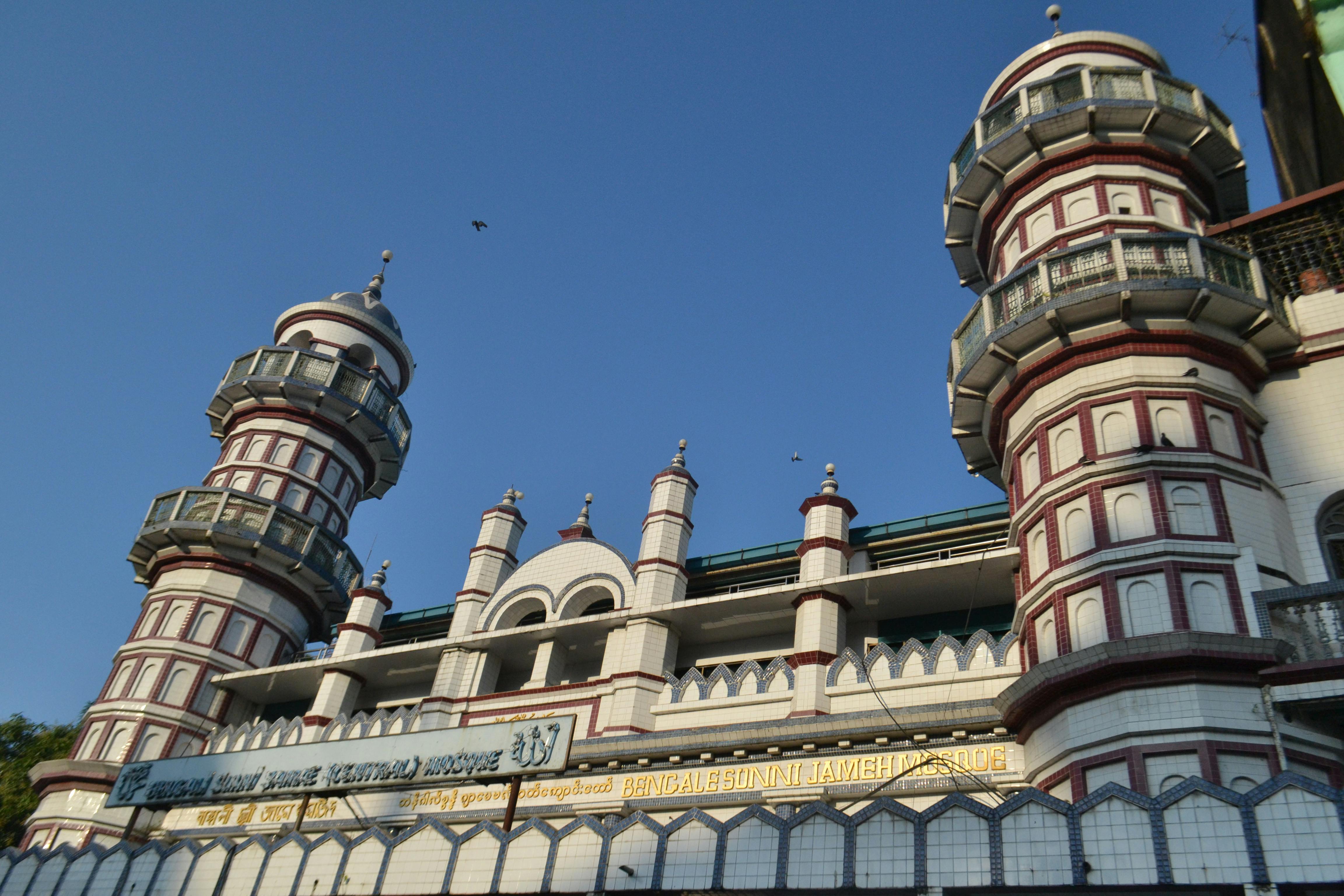 Tak jauh dari restauran halal, kami menemukan Masjid. Memang tujuan kami adalah ingin mengunjungi Masjid di Myanmar. Kami mengetahui MASJID di peta wisata Yangon. Bentuknya dari luar seperti bangunan dan menyatu dengan bangunan lain. Tapi cukup mudah kami mengetahu itu Masjid. Sayangnya pas kesana masjidnya tutup sehingga tidak bisa masuk. Padahal kami hendak masuk ke dalam masjid di Yangon.