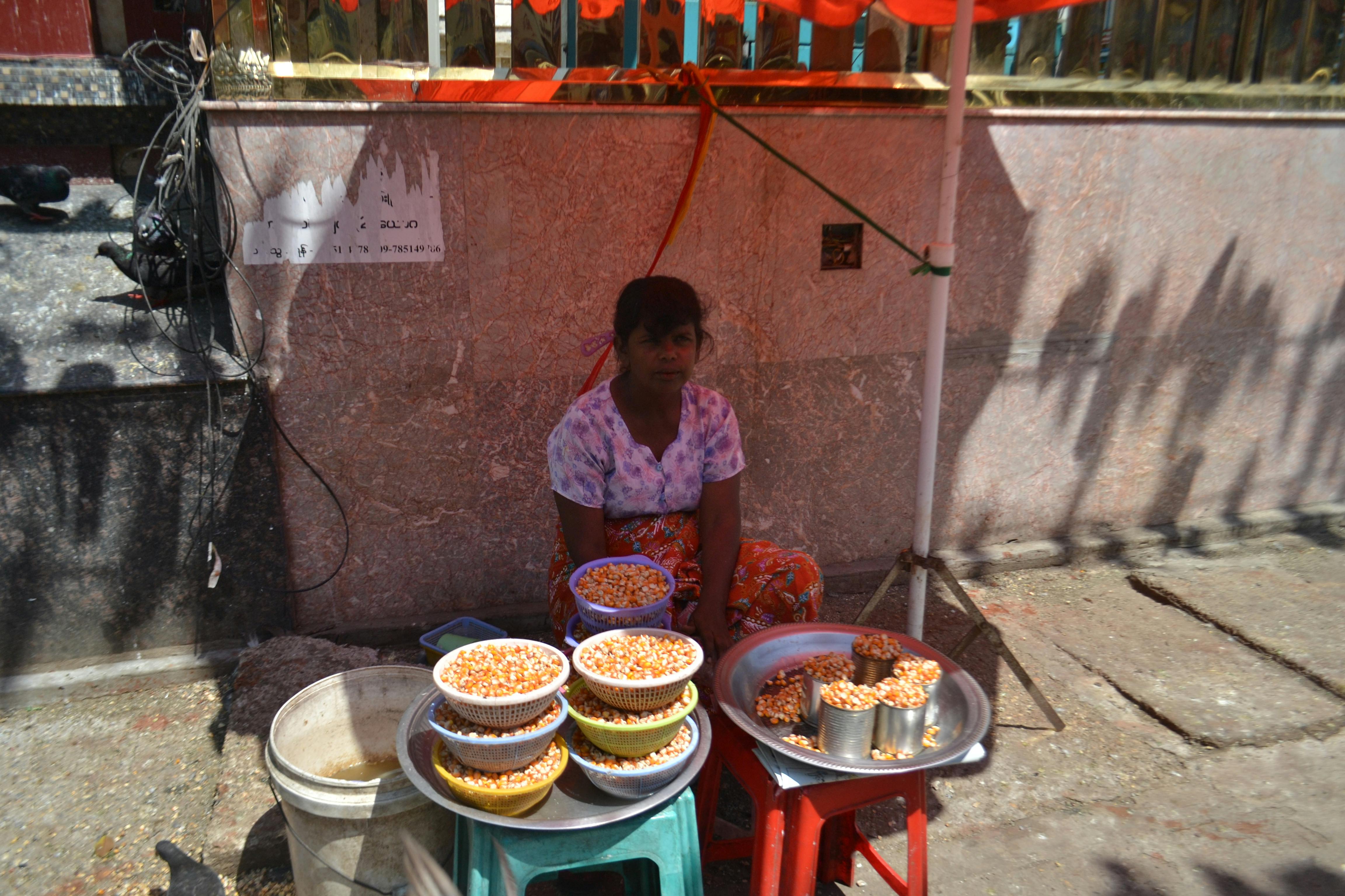 Saat mencari oleh-oleh bersama Ade, kami sempat melewati sebuah kuil di Yangon yang menurutku unik. Unik karena banyak merpati di depannya serta penjual makanan untuk merpati. Kuil ini bukan untuk Buddha seperti kebayakan di Myanmar, namun kuil untuk umat Hindu. Coraknya mengingatkanku akan kuil di Medan, Indonesia atau mirip Kuil di Batu Caves, Malaysia. Yang pasti di Yangon, Burma aku juga menemukan kuil Hindu.