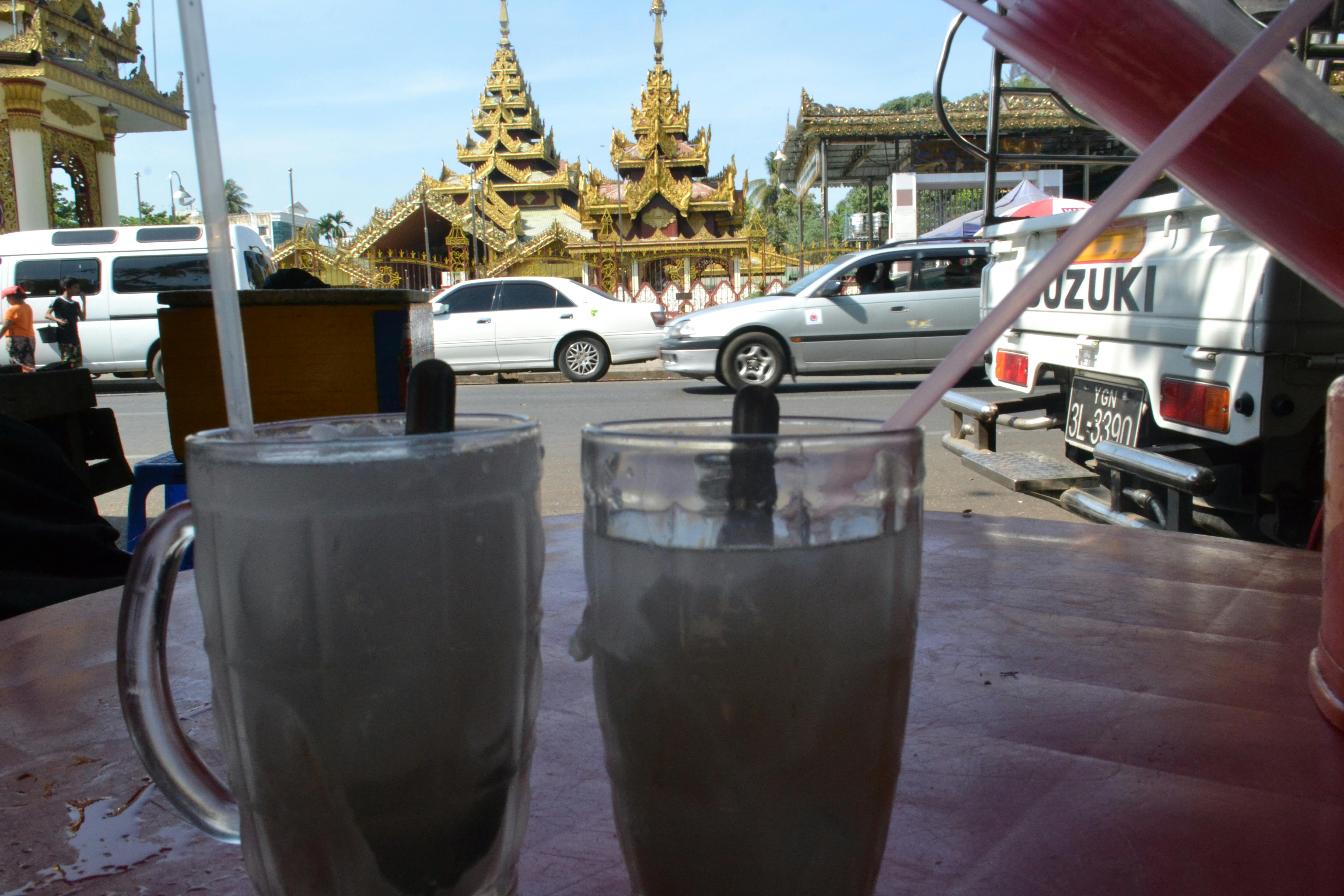 Untuk pertama kalinya kami menemukan makanan halal disekitar Masjid yang ada di area Sule Pagoda. Meski makanan India, aku dan Ade memakan  Thosa + Egg + Susu Tea seharga 1350 KS. Rasanya sungguh nikmat mendapatkan makanan yang bisa kami makan.