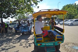 Yang jadi PR adalah cara ke Pelabuhan Bangsal karena jauh dari Kota Mataram, dari Senggigi saja sekitar 45 menit. Karena kami tidak mau repot, makanya kami naik mobil saja ke Pelabuhan Bangsal. Mobil diparkir seharian hanya Rp10.000 saja lalu kami menyeberangan ke Pulau Gili Air.