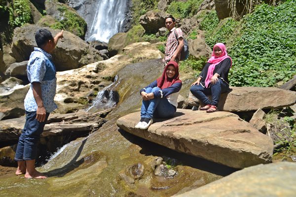Karena udah disemen beton begitu cadi nggak ada pacet ya, Kak Win. Mantep nih panas panas ke air terjun. Jadinya boleh mandi nggak di sekitar air terjun?