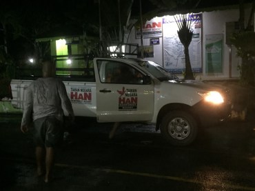 We gathered at the meeting point at 8:15pm, around 8:20pm we jumped on the back of a pick up which drove off.