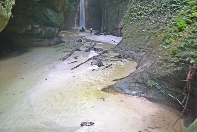 I’ve seen my fair share of the waterfall, but none of them matches this one. The waterfall was neither high not big, it would be plain ordinary if it wasn’t for the place where it is located. The water is flowing at one end of a dozen meter wide canyon into a shallow pond turning into a few centimeter deep stream flowing on the white sand.